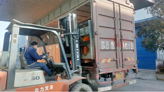 1月13日8點剛上班,一輛40 尺高柜貨車停放在了華豫萬通的生產區(qū)。出口贊比亞代理商的50臺玉米脫皮機,準備裝柜發(fā)貨。